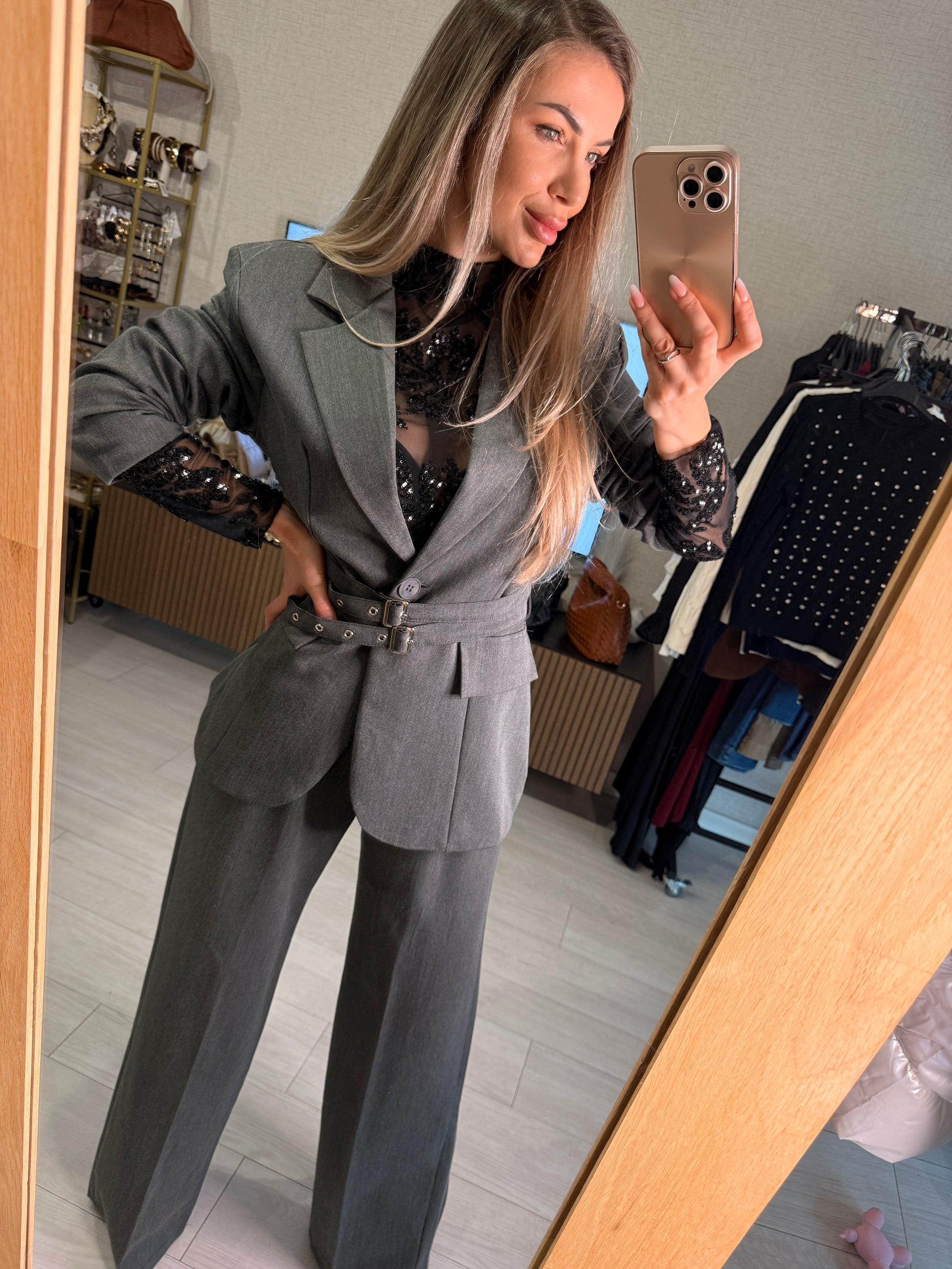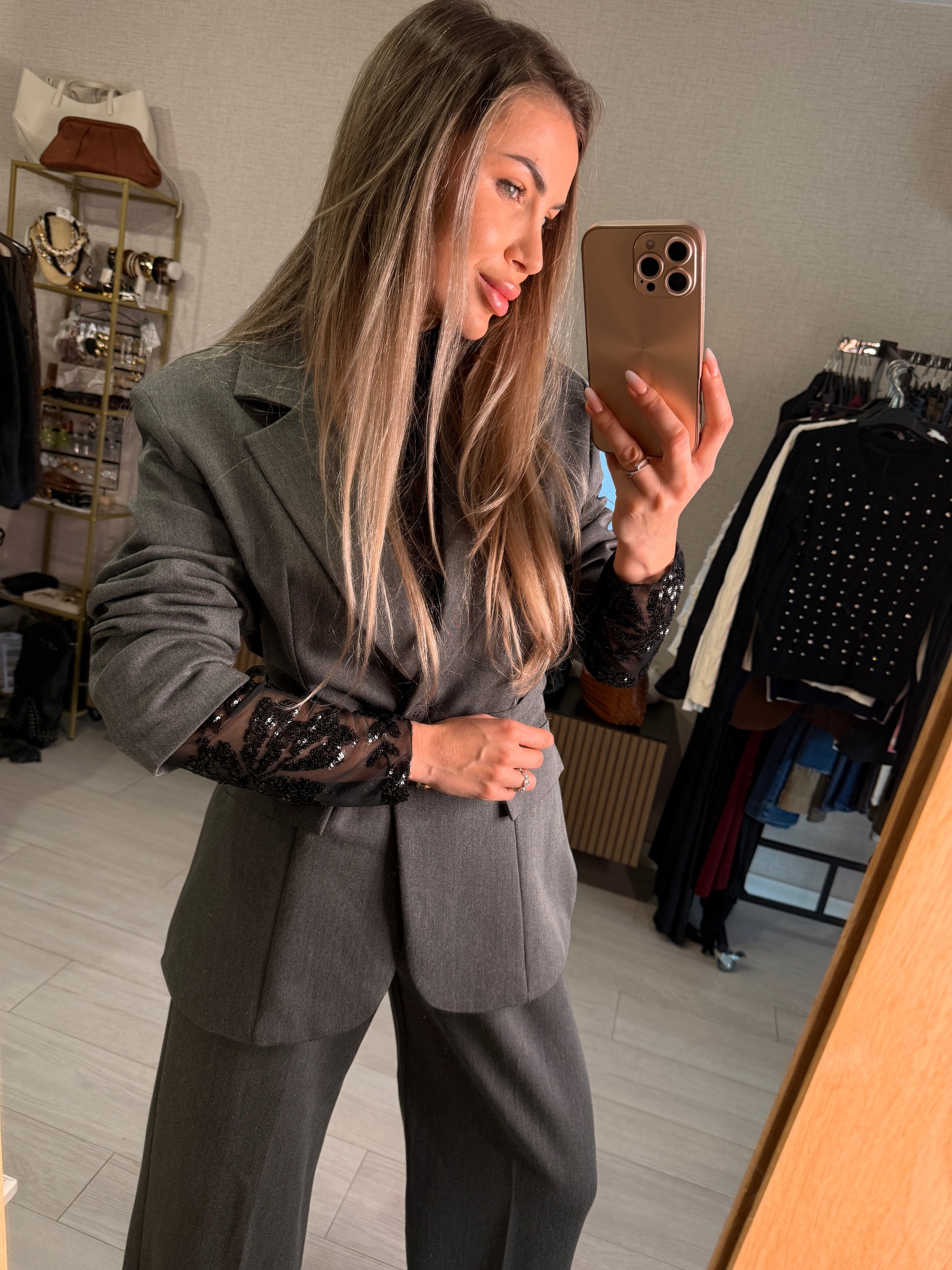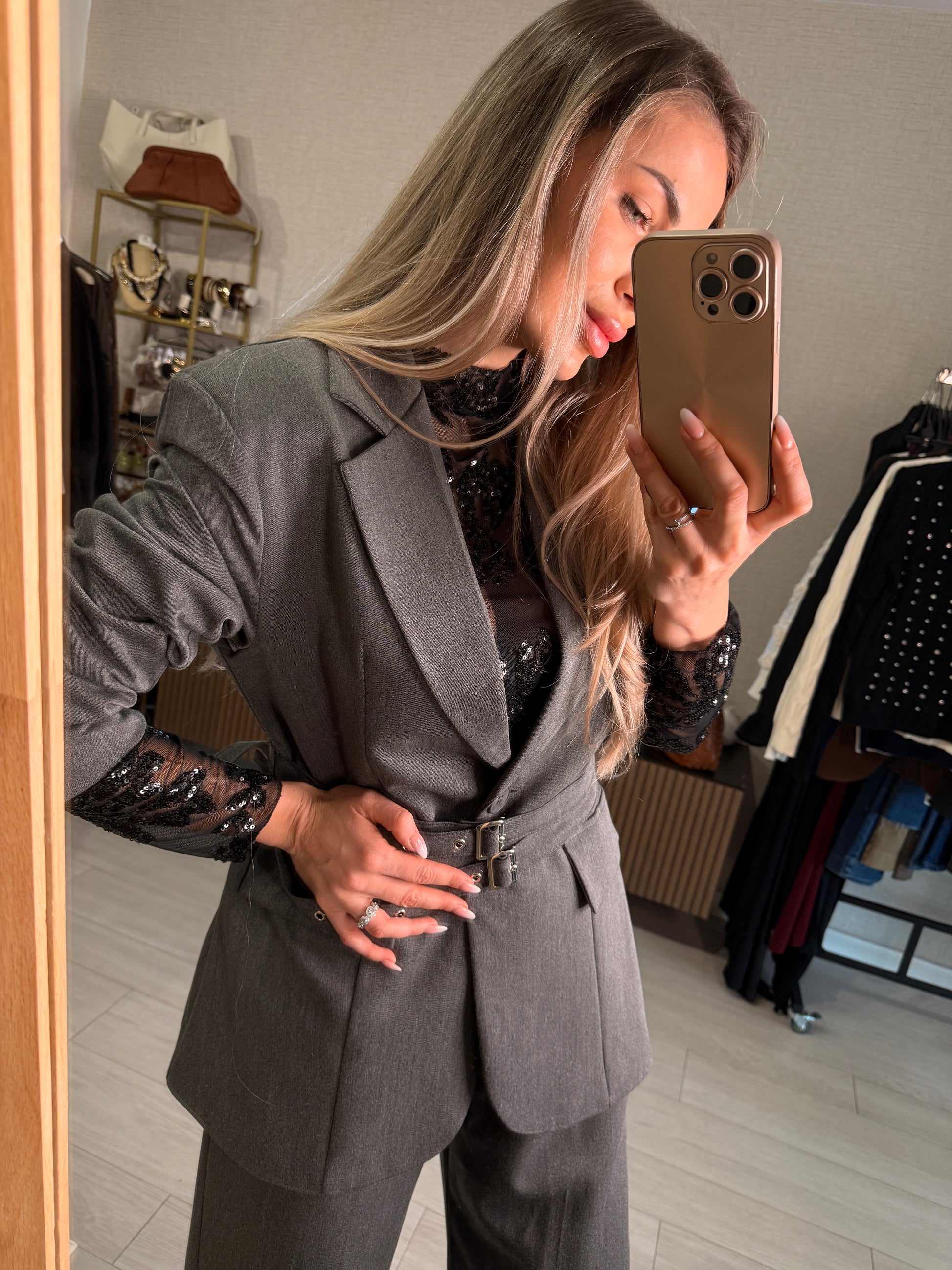 Blusa semi transparente con lentejuelas, muy elegante ideal para los looks más sofisticados. Talla única, ideal desde una XS hasta una L, contorno pecho 85-105 cm