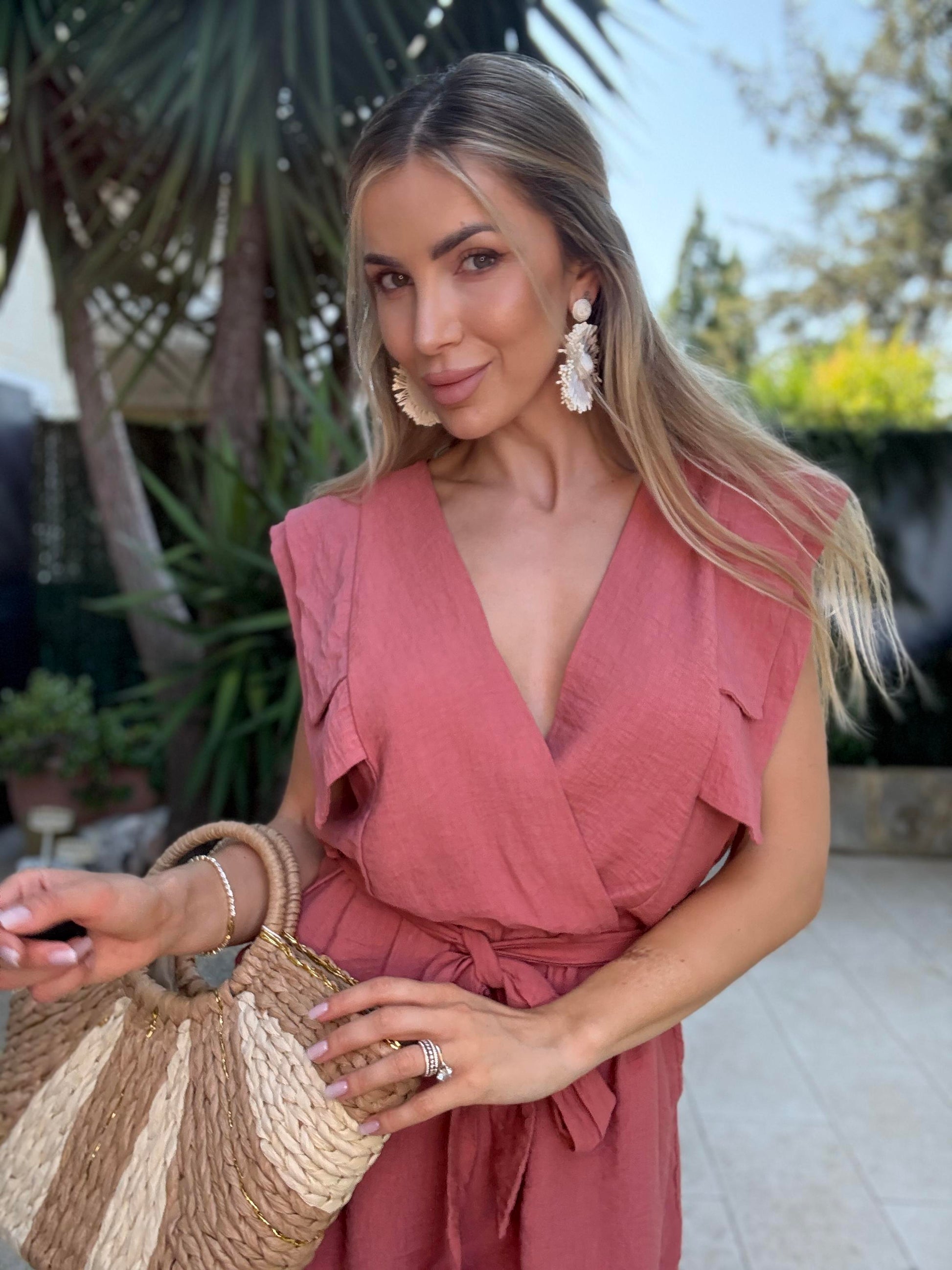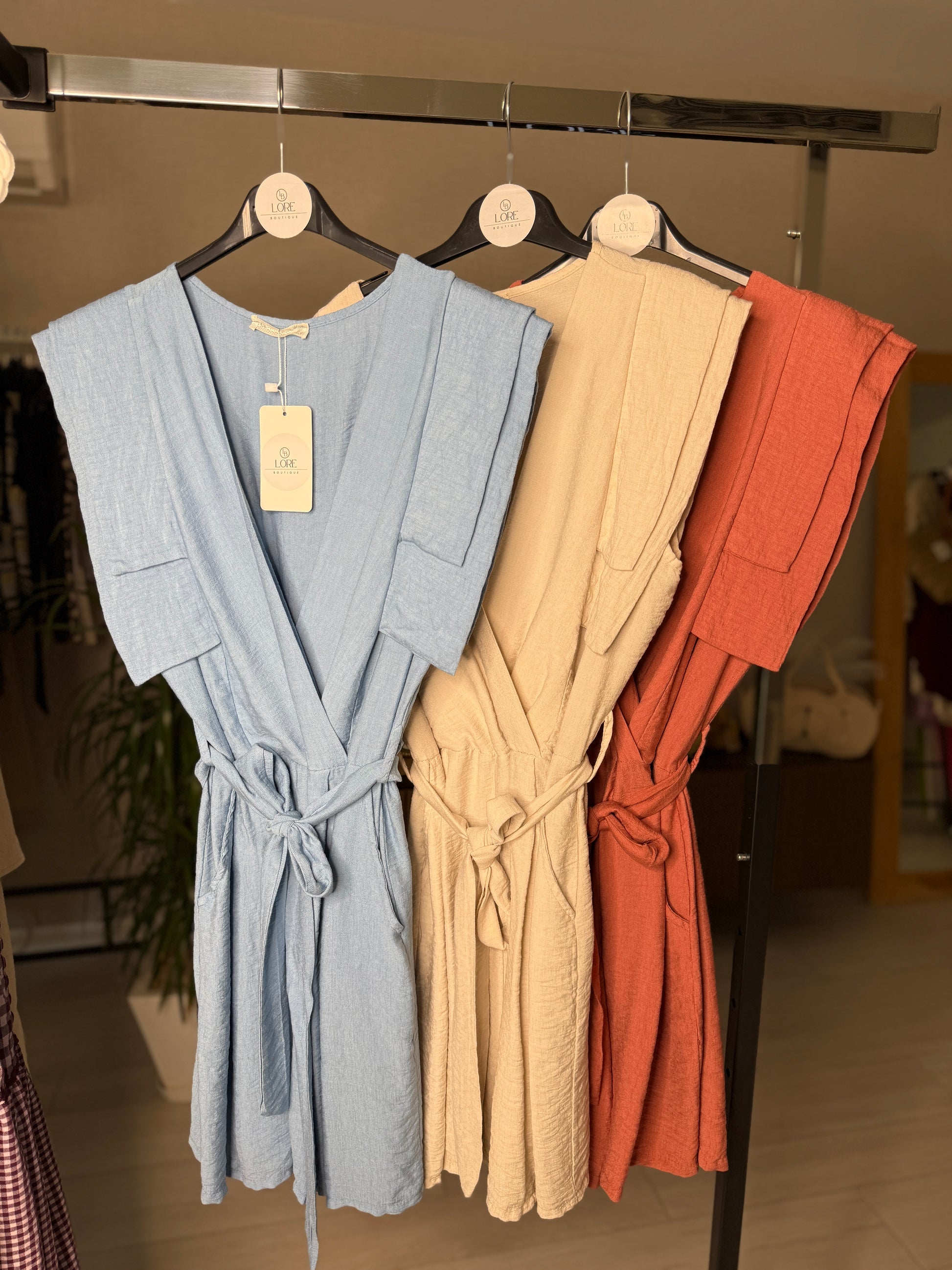 Este mono corto es fresco, cómodo y versátil, con un diseño elegante que resalta la figura gracias a su cordon ajustable y los detalles de volantes en los hombros. Disponible en colores celeste, beige y rosa, es talla unica pero da desde una 34 hasta una 44. Ideal para cualquier ocasión, fácil de combinar y perfecto para los días de verano. ¡Un must en tu armario!