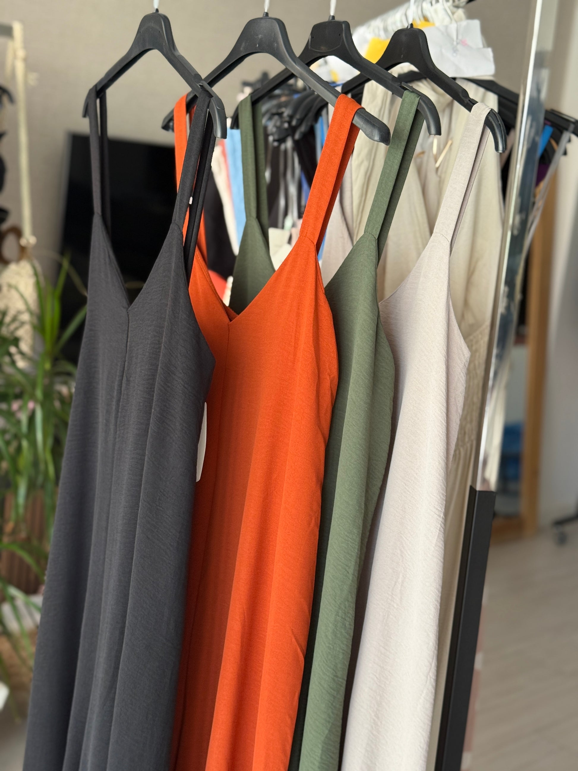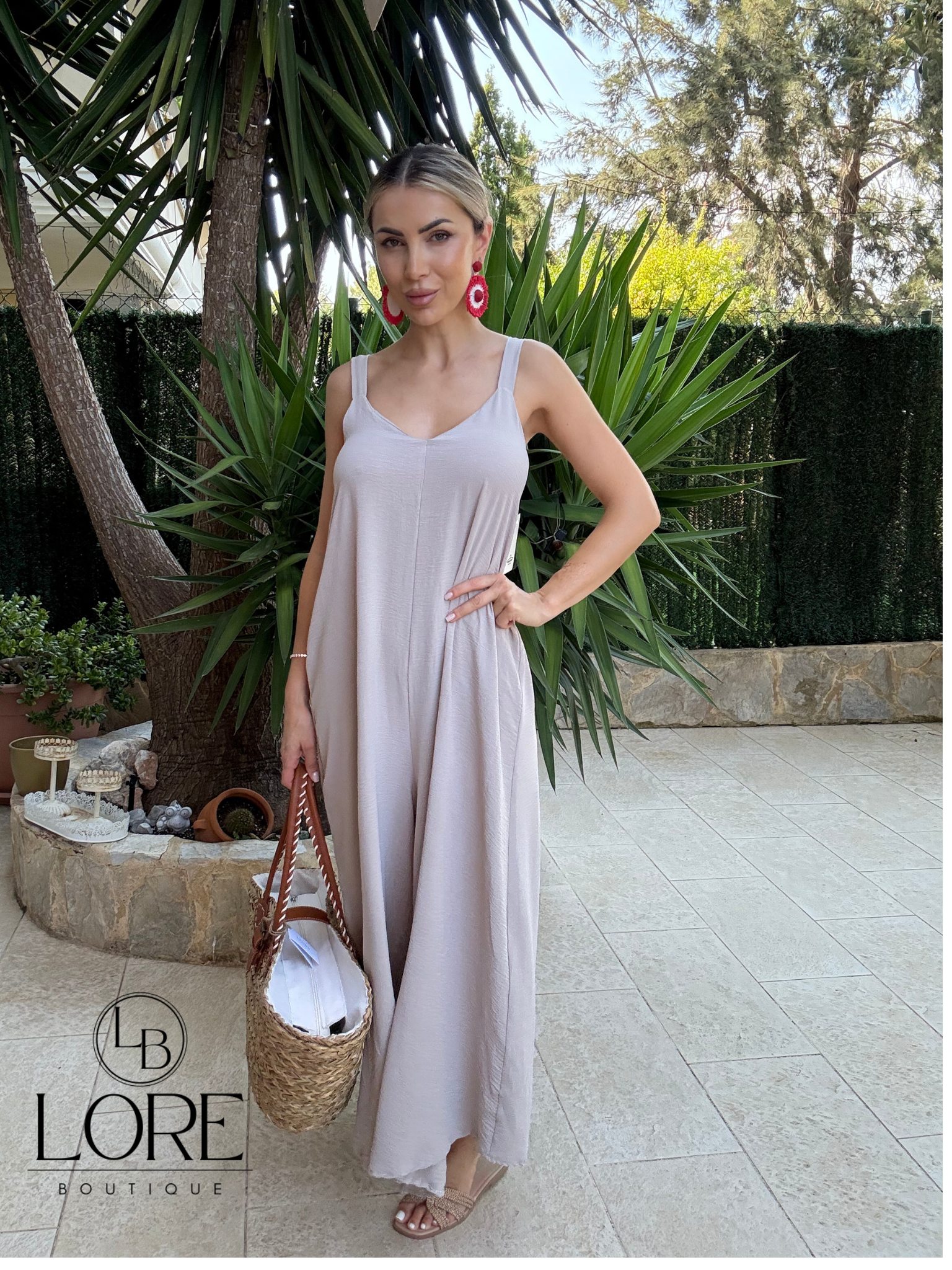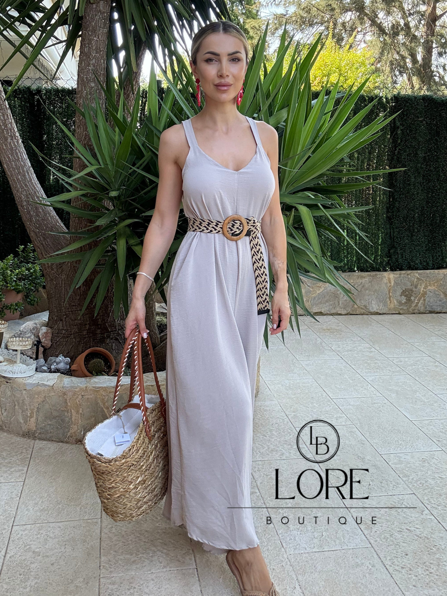 Mono largo fluido y ligero, ideal para este verano. Talla única, se adapta perfectamente desde una S hasta una XL. El cinturón no viene incluido.
