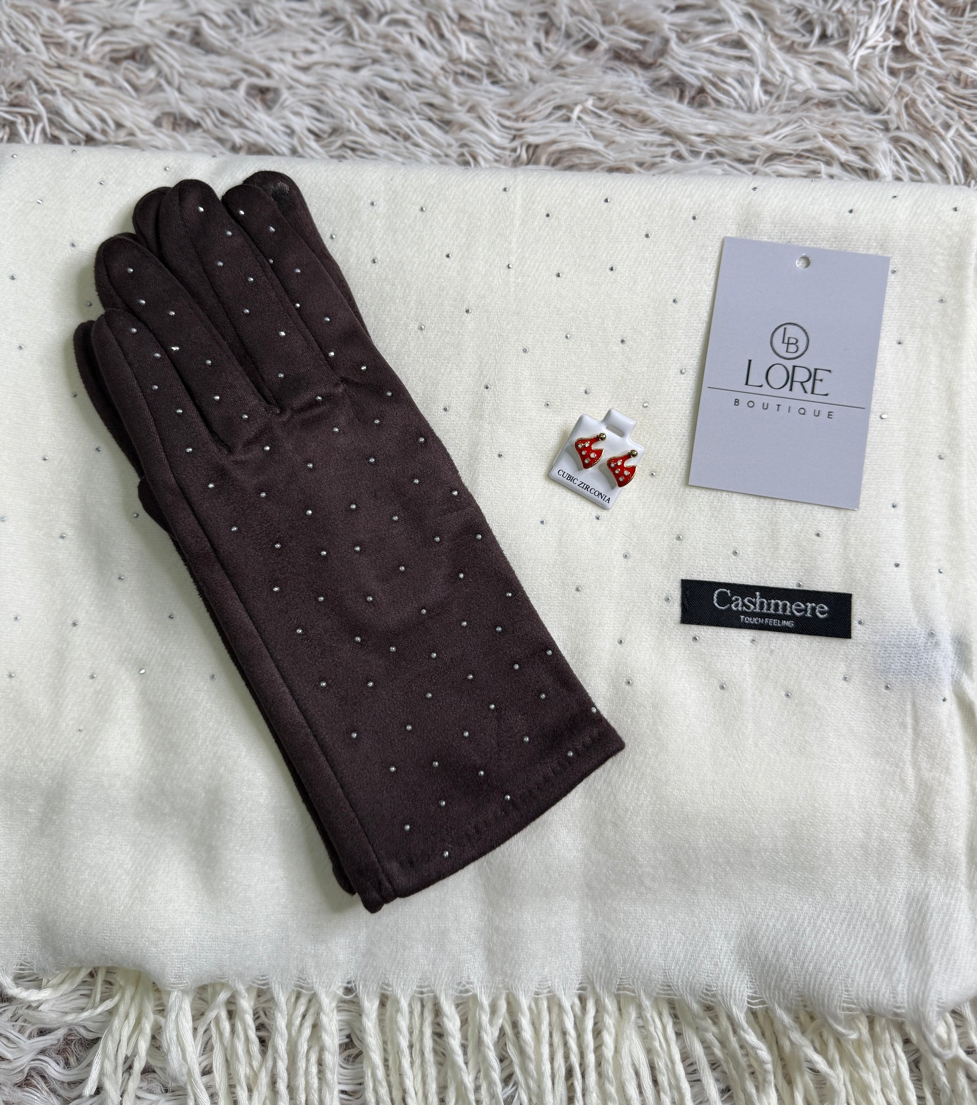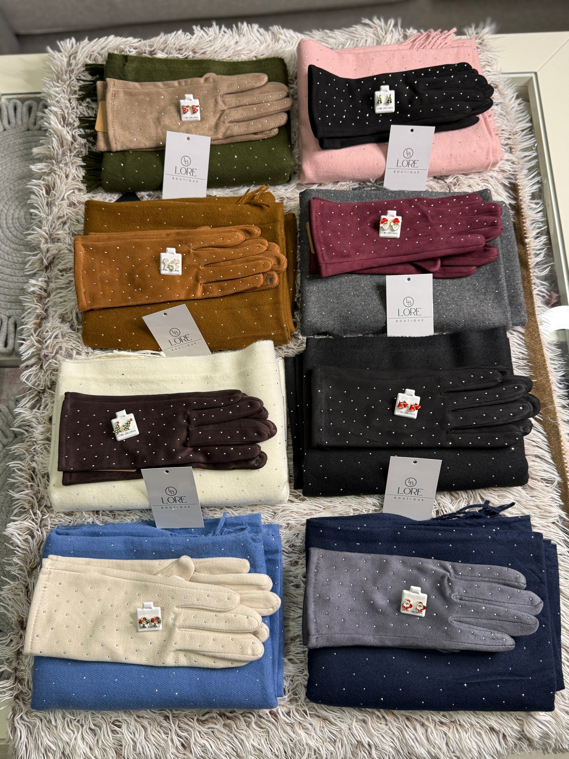 🧤 Guantes con cristales combinados por colores (no idénticos, pero armonizan y quedan ideales).