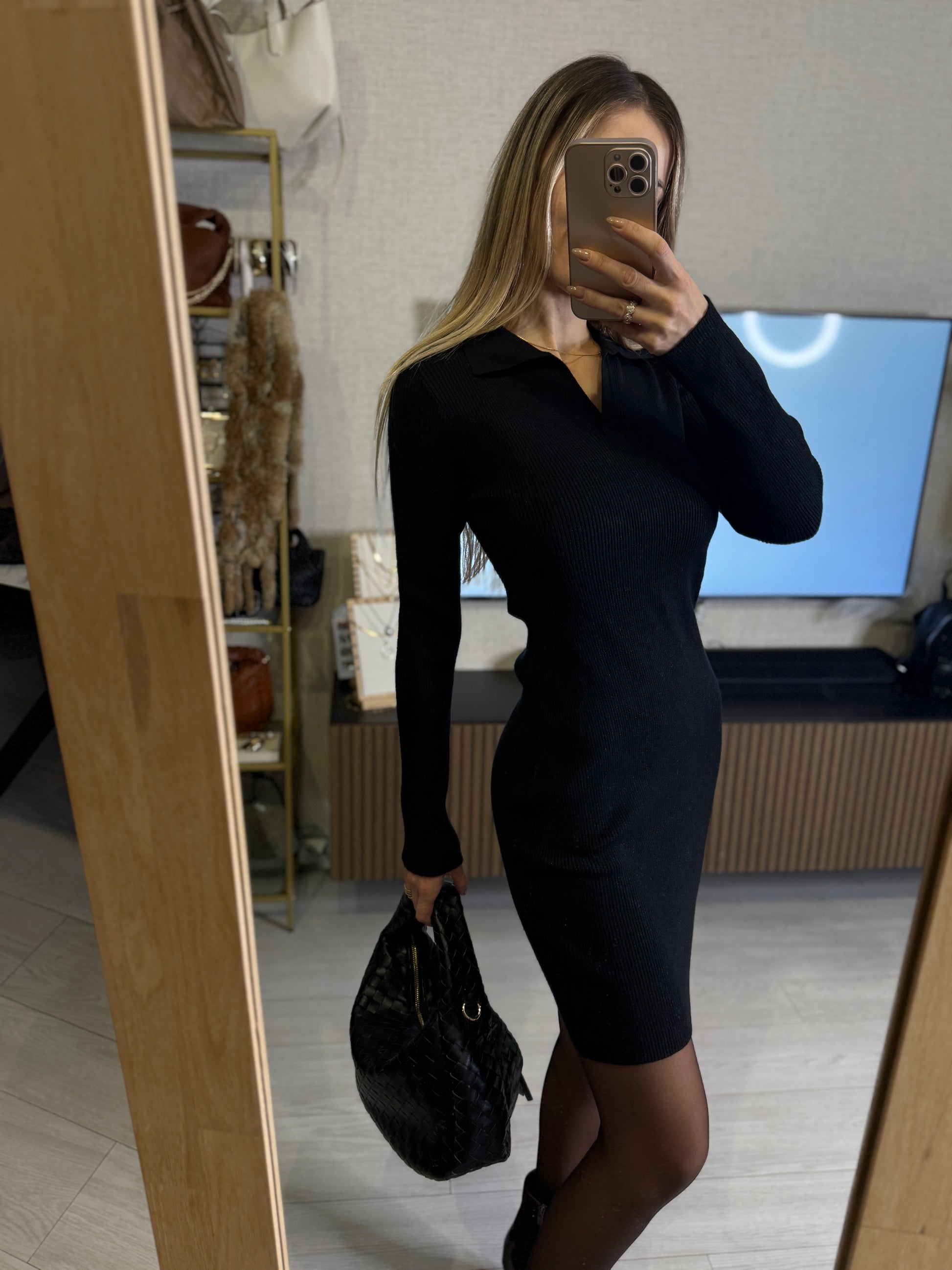 Un vestido corto, de manga larga, que combina comodidad y brillo en la medida perfecta. Su tejido de punto con hilo metalizado aporta un toque luminoso precioso sin resultar exagerado, ideal para eventos, noches especiales o para darle un extra de glamour a tu día a día.