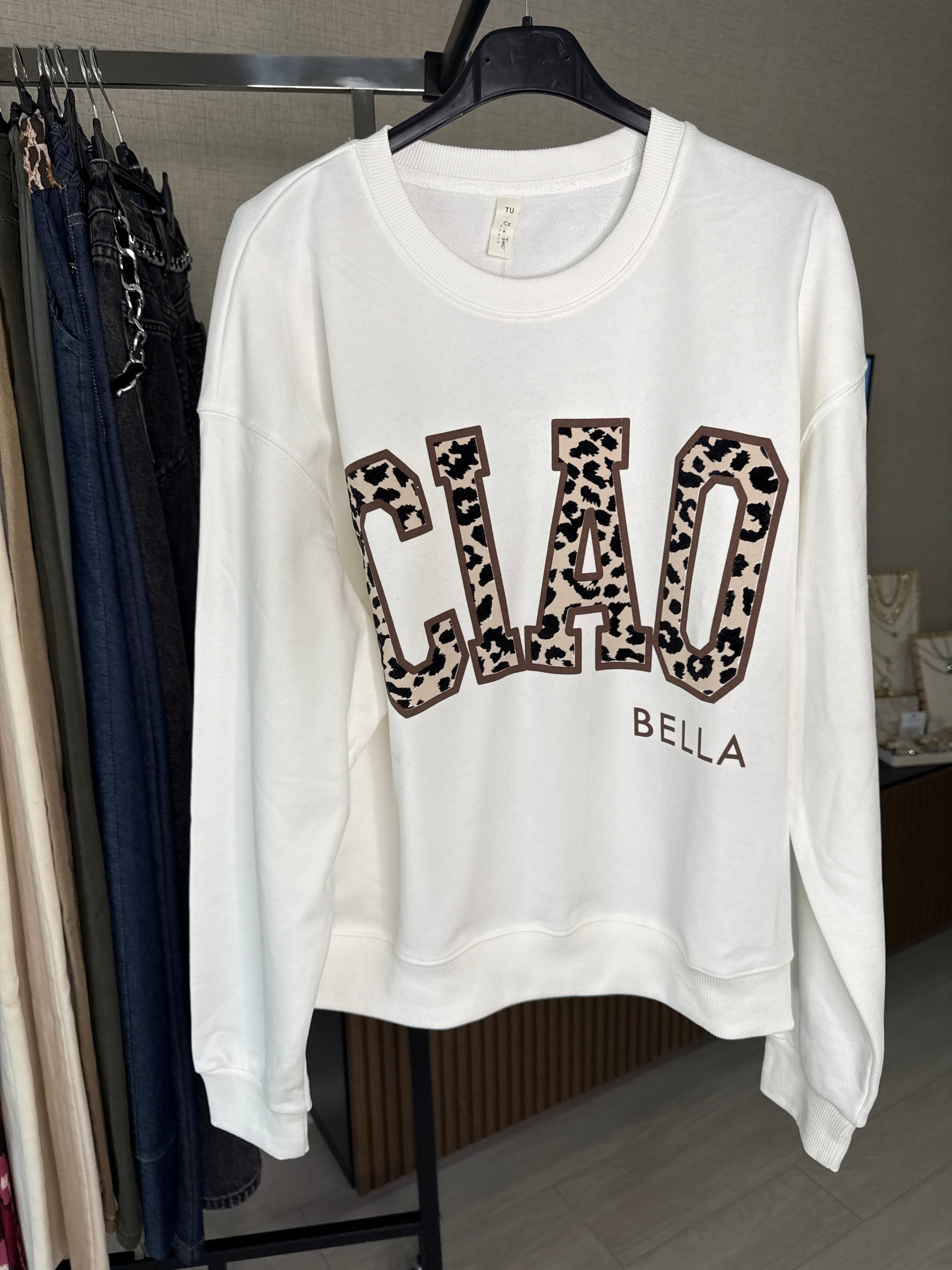 Sudadera blanca de algodón con varios estampados que aportan textura y estilo. Un básico cómodo y elegante, perfecto para combinar con jeans, faldas o pantalones deportivos, ideal para un look casual con un toque sofisticado.